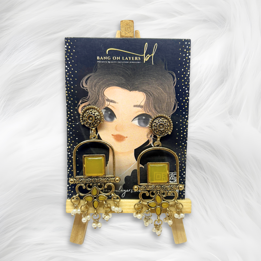Traditional Yellow Stone Dangler Earrings with round top for Women